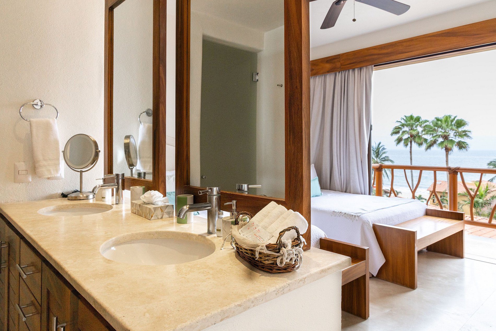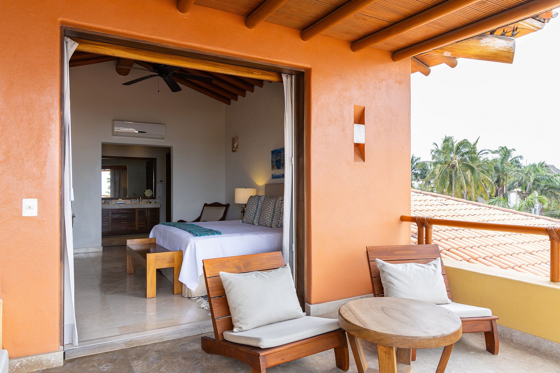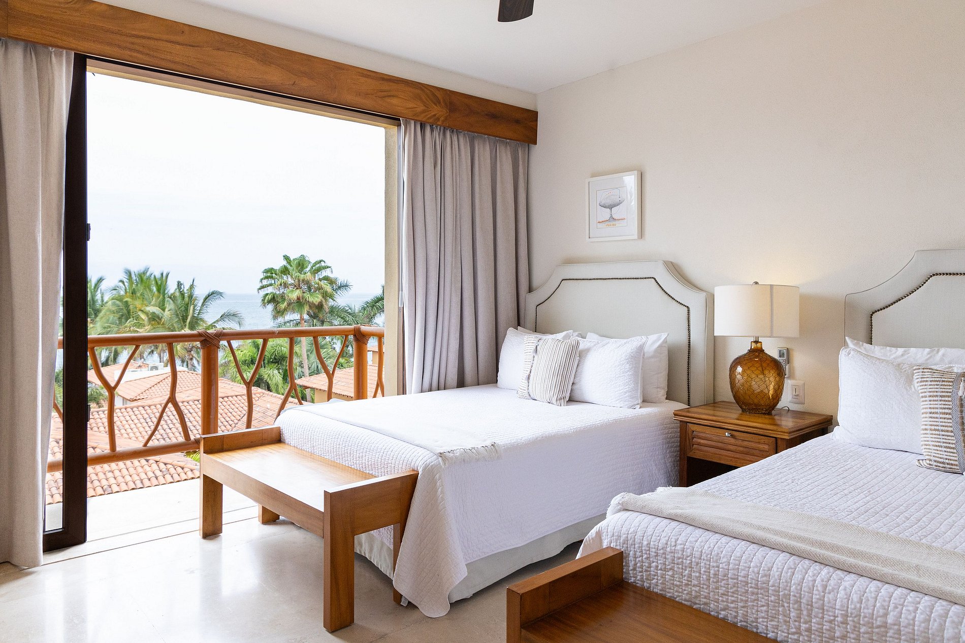 Each room includes a spacious bathroom and a television. We also offer additional services, including hiring a cook, babysitter, arranging tours, airport transportation to Bucerías, and even grocery shopping.