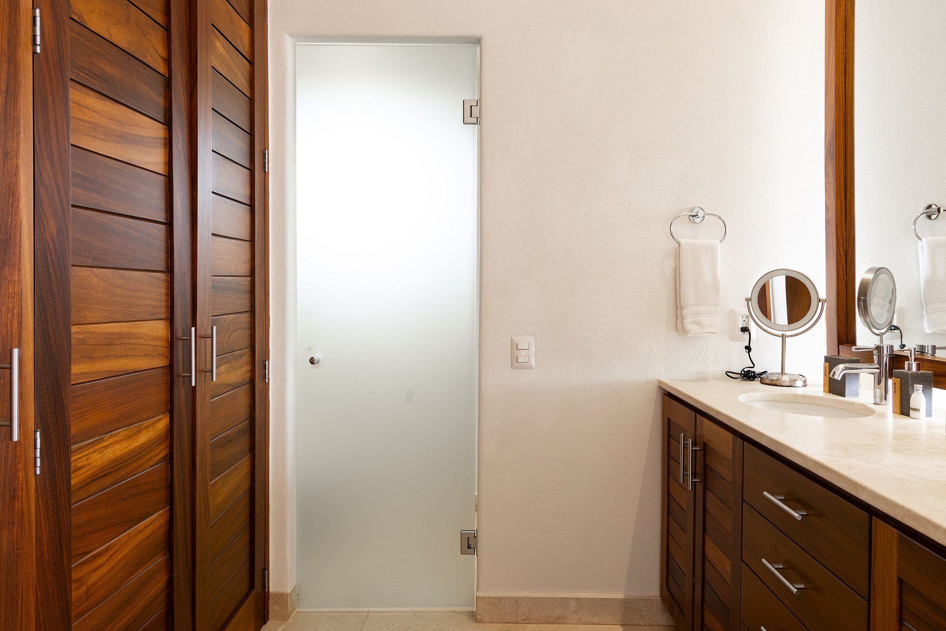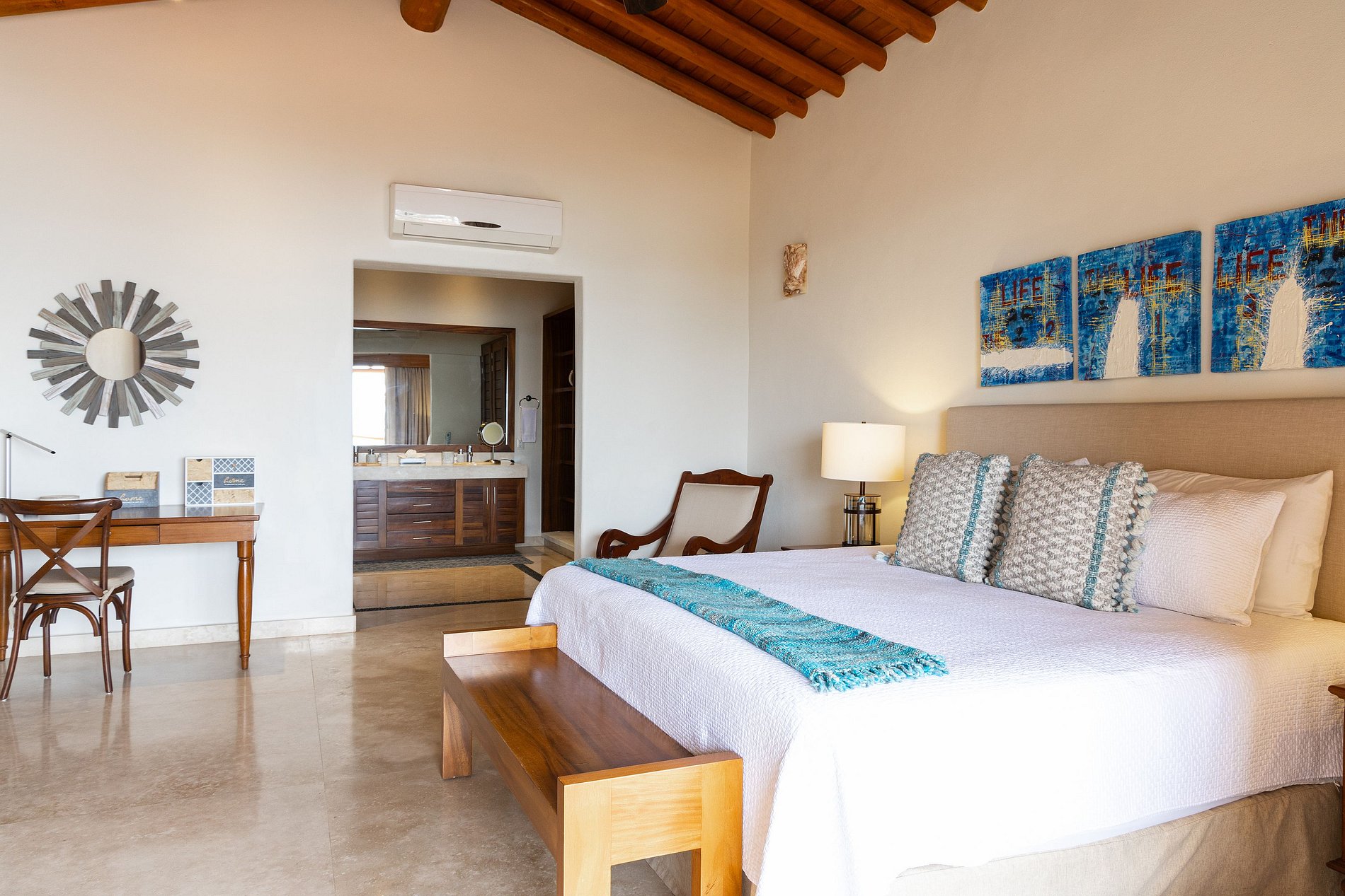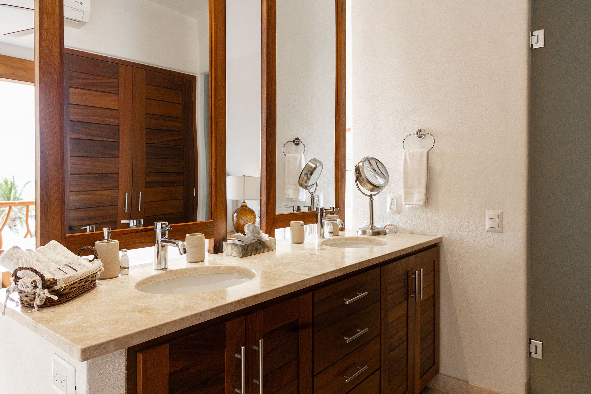 Each room includes a spacious bathroom and a television. We also offer additional services, including hiring a cook, babysitter, arranging tours, airport transportation to Bucerías, and even grocery shopping.