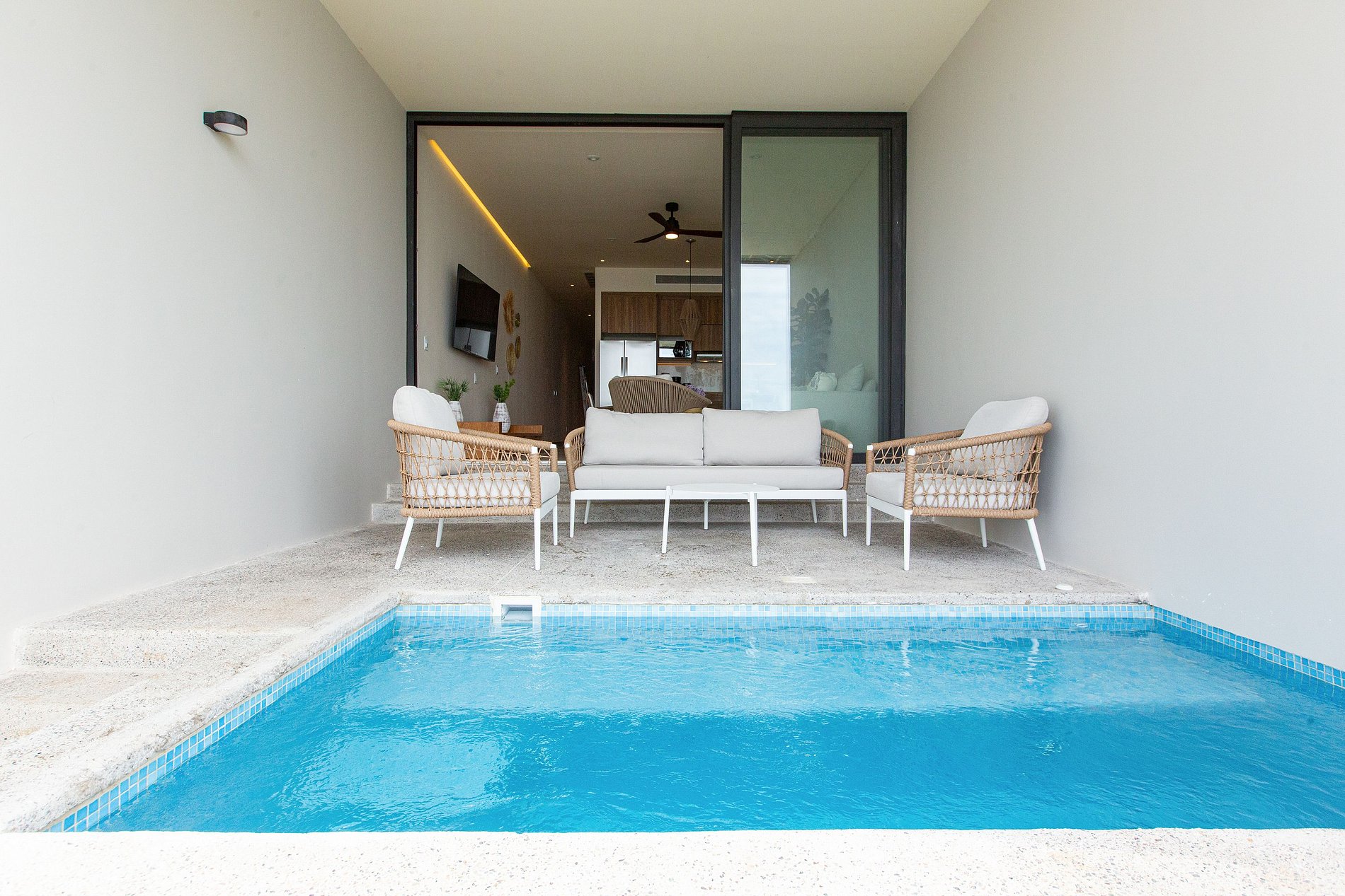Tiene una alberca privada en su terraza, la cual te permite tener mucha privacidad, comodidad y armonía entre el mar, la arena y tu.