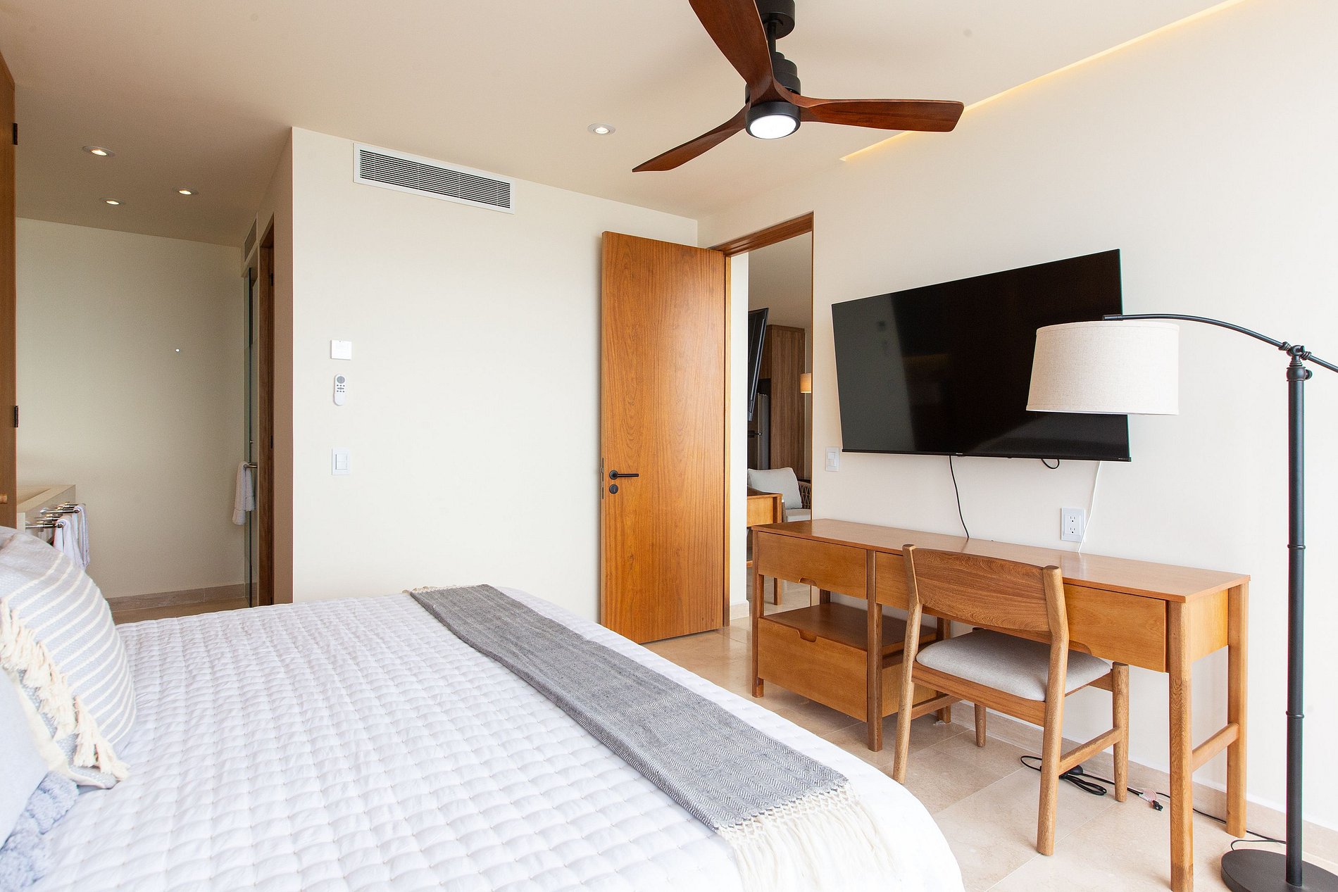 Tiene dos recámaras con TV, baño y armario.